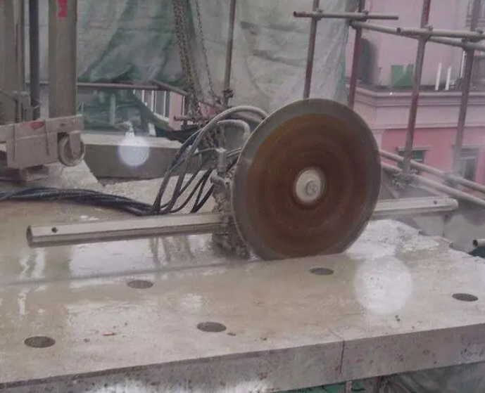 繩鋸切開。發(fā)動(dòng)開端按鈕,調(diào)整自動(dòng)輪提高張力,確保金剛石繩子恰當(dāng)繃緊,供給冷卻水,再發(fā)動(dòng)驅(qū)動(dòng)自動(dòng)輪,帶動(dòng)金剛石繩子反轉(zhuǎn)切開。吊裝及破碎。切開完結(jié)后,全體將混凝土構(gòu)件吊裝到指定的場(chǎng)所破碎,并及時(shí)清運(yùn)出施工現(xiàn)場(chǎng)。
